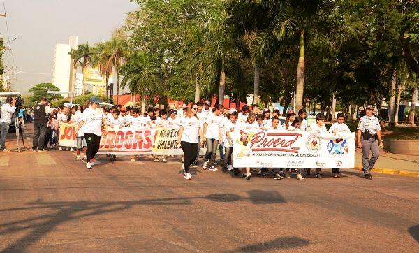 Cerca de 300 crianças e adolescentes realizaram uma caminhada contra as drogas no início da manhã desta segunda-feira (25) pelas principais ruas do centro de Rondonópolis. O grupo era encabeçado pelos alunos do Programa Educacional de Resistência às Drogas e à Violência – Proerd, mantido pela parceria entre Secretaria de Educação do Município e 5º Batalhão de Polícia Militar –BPM, e receberam o apoio da iniciativa privada, Pastoral da Sobriedade, Caps-AD e de participantes do projeto Arte Suave, que usa o Jiu-Jitsu para tirar crianças das ruas.