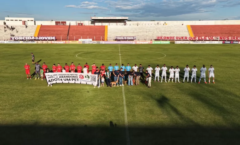 Antes do início da partida, os animais resgatados entraram em campo junto com a equipe do CIBEAR e os jogadores do União, acompanhados por uma faixa de conscientização com a mensagem “Faça uma jogada de mestre, drible o abandono e adote um pet”.