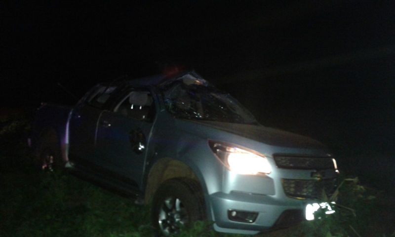 Os policiais conseguiram localizar o veículo e começaram a segui-lo, sendo que próximo ao posto da Polícia Rodoviária Federal (PRF), o motorista perdeu o controle da caminhonete e capotou.