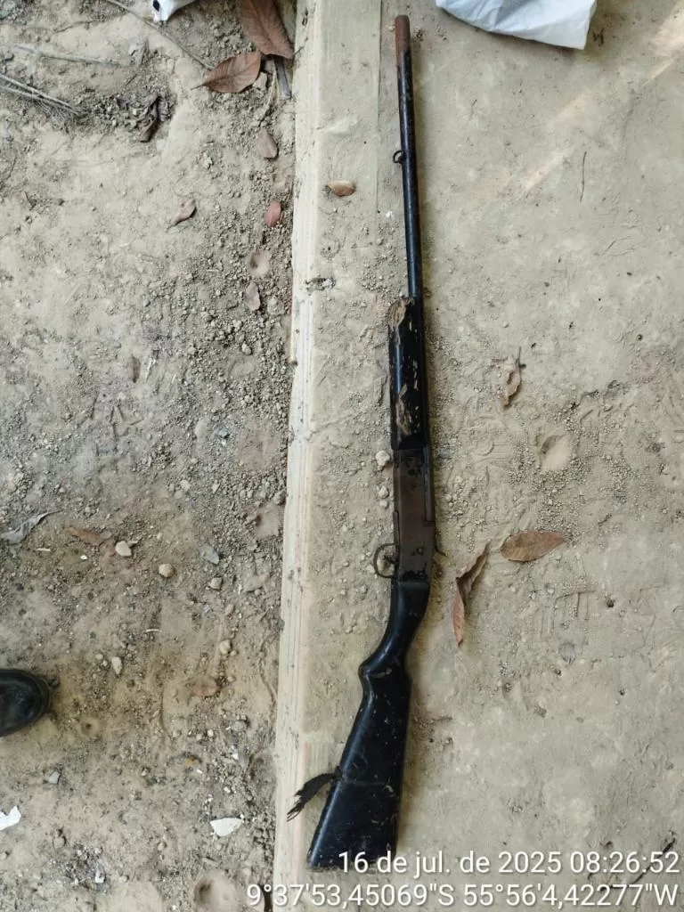 As equipes localizaram um saco branco contendo sete peixes das espécies cachara, barbado e trairão, totalizando 25 kg de pescado. Além disso, os policiais encontraram uma arma de fogo, um tarrafão utilizado para a prática ilegal da pesca e outros petrechos.
