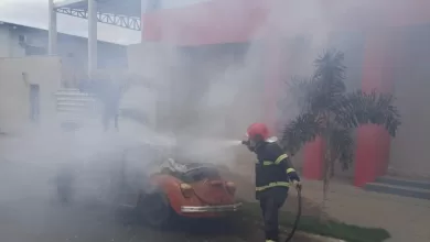 Corpo de Bombeiros combate incêndio em fusca no centro de Campo Novo do Parecis
