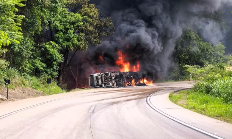 A equipe da 11ª Companhia Independente Bombeiro Militar (11ª CIBM) foi acionada por volta das 14h. E segundo as informações repassadas, as chamas se espalharam rapidamente, consumindo a carreta, a cabine, a carroceria e toda a carga.