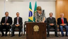 “Agradeço aos senhores deputados aqui presentes e aos senhores senadores, representando a base aliada. Agradeço primeiro essa força para que a gente aprove e mande como medida provisória, medida de urgência com vigência imediata”, disse a presidenta.