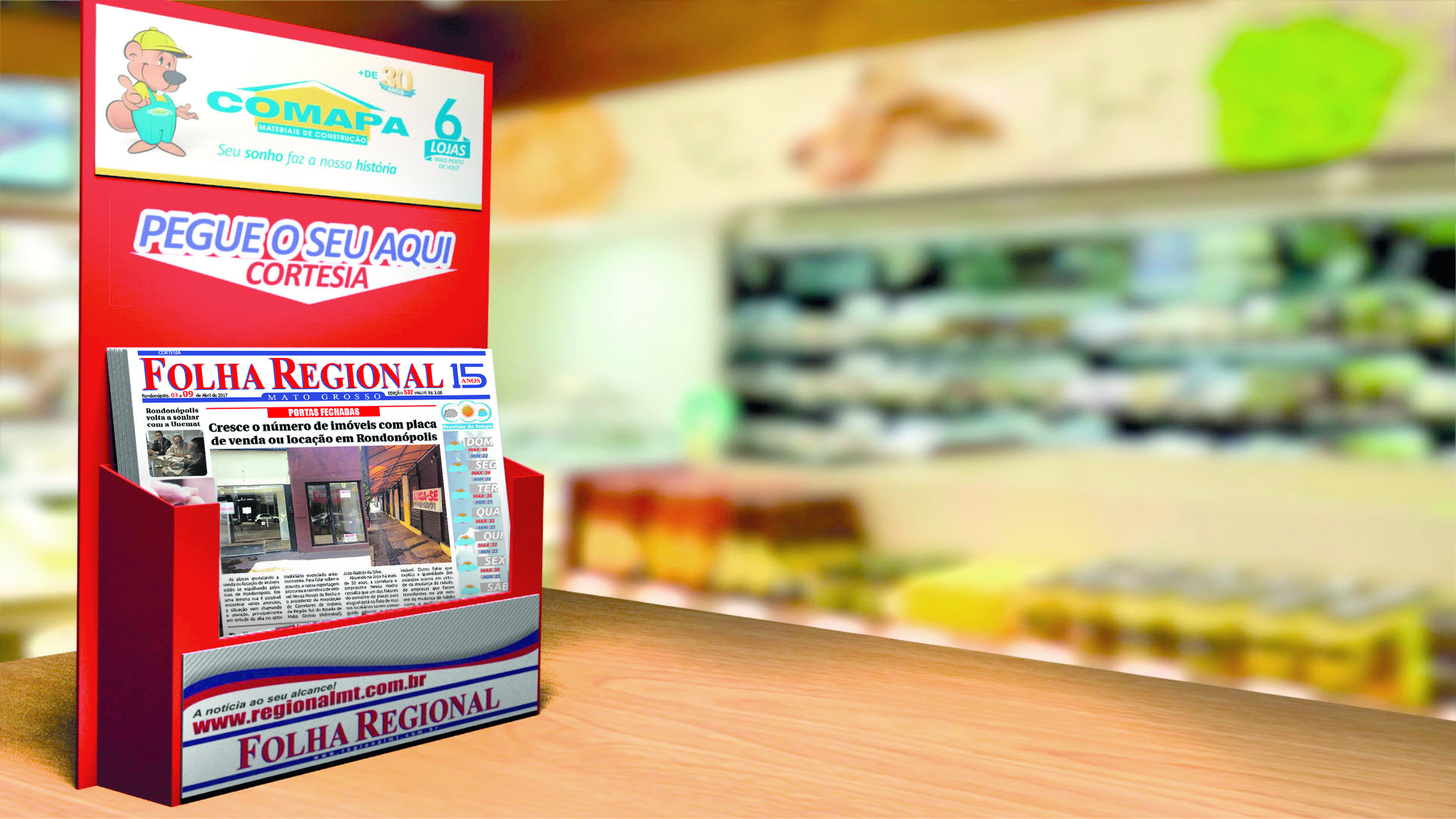 De acordo com o diretor executivo Evandro Santos foi firmado parcerias com as empresas para que o jornal continue chegando gratuitamente ao cidadão rondonopolitano levando a “notícia ao seu alcance”. O objetivo do projeto é distribuir em mercearias, postos de combustíveis, padarias e mercados, entre outros estabelecimentos, prateleiras no formato indoor com cerca de 30 exemplares cada uma.