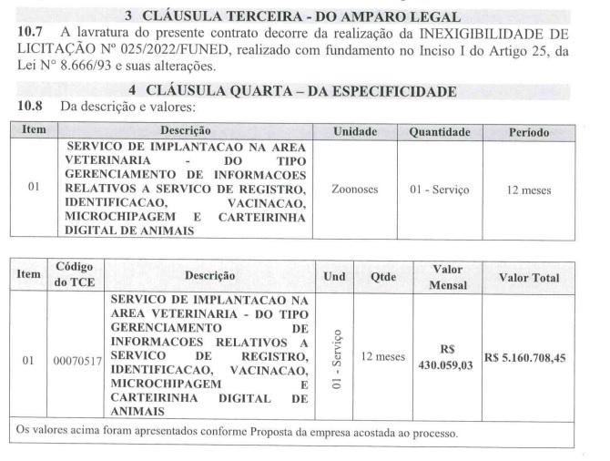 Conforme o contrato para rastrear cães e gatos, a empresa receberá R$ 430 mil, o que corresponde a R$ 5,16 milhões em um ano. O contrato foi assinado pela ex-secretária de Saúde, Suellen Alliend.