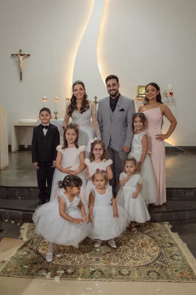 O casal de noivos Nathalia Gomes e Igor Moreira oficializaram a união com uma cerimônia religiosa e sofisticada em Rondonópolis, na igreja Nossa Senhora da Aparecida, o evento reuniu familiares e amigos. Entre muitas emoções, lágrimas e sorrisos marcaram a entrada dos noivos no caminho do altar. Para a beleza, Nathalia Gomes optou por uma maquiagem natural com o cabelo todo cheio de cachinhos usando uma tiara prata, o profissional da beleza Silveira D’abadio by SV Cabeleireiro assinou a produção exclusiva da noiva. Nathalia Gomes rouba a cena e chama atenção com um belíssimo vestido branco longo e o destaque da noite ficou por conta da daminha Sarah Moura. Os noivos recepcionaram os convidados e padrinhos no espaço de eventos de Venezza acompanhado com jantar feito por Ella’s Buffet a mesa de doces finos foi Maria’s doces, o fotógrafo Rafael Soares que registrou todo os momentos inesquecíveis. A decoração foi realizada por Elzy, na ocasião ela fez exatamente como o casal queria, deixando o ambiente mais sofisticado e chic com um toque de flores na cor rosa e com tons de entre branco e verde. Este colunista social deseja para vocês felicitações