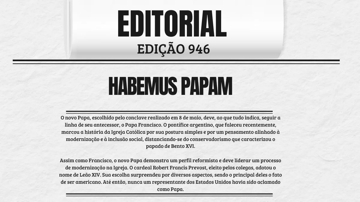 Assim como Francisco, o novo Papa demonstra um perfil reformista e deve liderar um processo de modernização na Igreja. O cardeal Robert Francis Prevost, eleito pelos colegas, adotou o nome de Leão XIV. Sua escolha surpreendeu por diversos aspectos, sendo o principal deles o fato de ser americano. Até então, nunca um representante dos Estados Unidos havia sido aclamado como Papa.