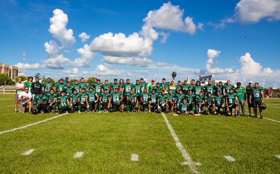 Após duas vitórias em dois jogos do brasileiro, o Cuiabá Arsenal fechou um pacote de reforços com oito jogadores para enfrentar o Campo Grande Predadores, no próximo sábado (12.08), às 14h, no Estádio Municipal Aquino Monteiro da Silva, o “Monteirão”, em partida válida pelo Campeonato Brasileiro de Futebol Americano, 1ª Divisão, no município de Acorizal (65km de Cuiabá). Com entrada gratuita e chance de classificação antecipada para o Cuiabá Arsenal.