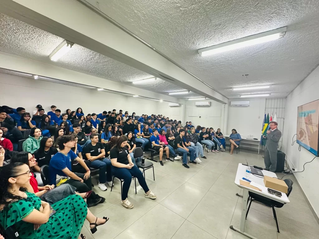 A Escola Estadual Major Otávio Pitaluga (EEMOP), a maior escola estadual de Rondonópolis/MT e que completa 60 anos em 2025, recebeu, nesta quarta-feira (10) pela manhã, a oficina piloto do Projeto Diálogos com as Juventudes, que busca aproximar o Judiciário dos jovens brasileiros. A atividade foi conduzida pelo juiz Wanderlei José dos Reis, titular da 2ª Vara Especializada de Família e Sucessões, diretor do foro substituto e coordenador do CEJUSC da comarca de Rondonópolis e coordenador suplente do NUPEMEC. Mais de 100 estudantes do ensino médio participaram do encontro lotando o auditório da escola.