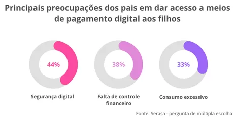 O estudo também revela que o dinheiro digital já faz parte da rotina infantil: 28% das crianças recebem mesada por meio de Pix, conta digital ou cartão, 73% tiveram acesso ao primeiro cartão ou conta antes dos 15 anos e 39% já usam o Pix como forma de pagamento. Outros 22% possuem cartão de débito vinculado à conta dos pais.