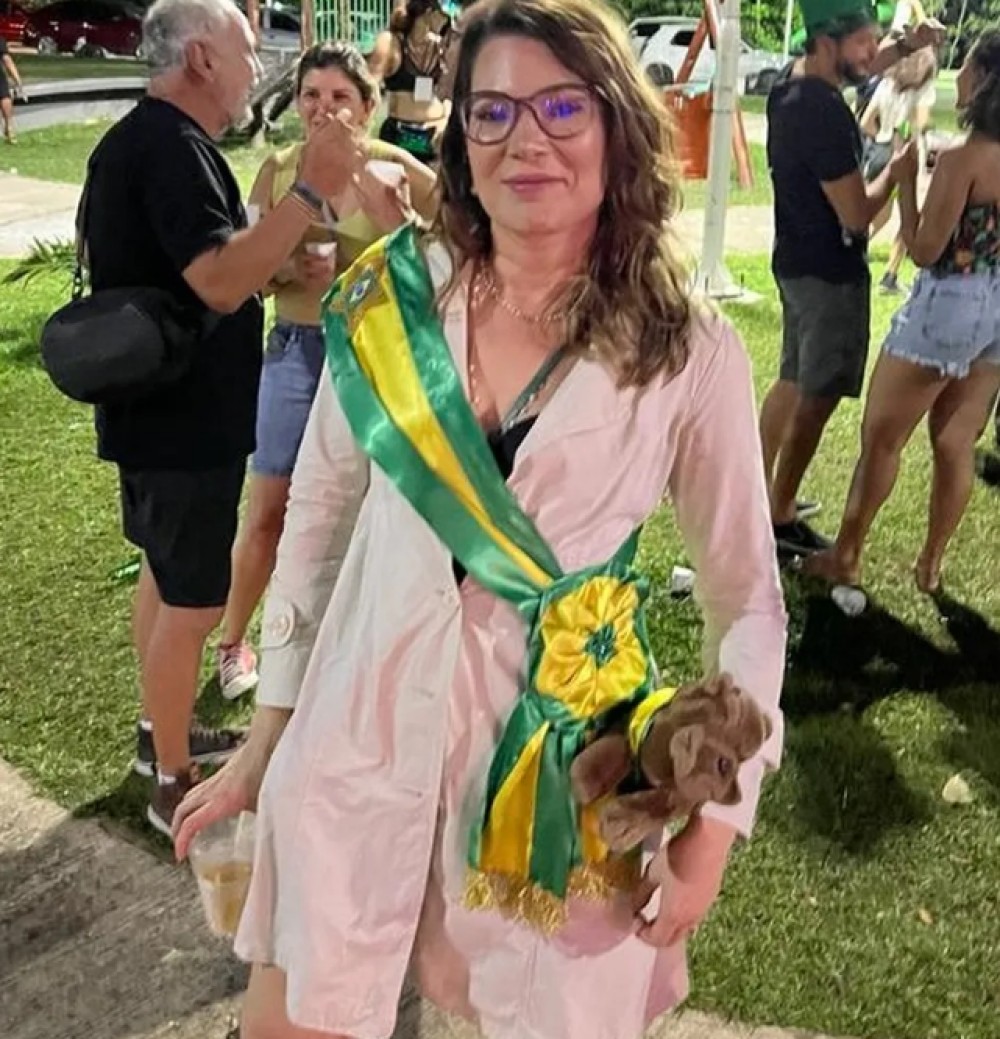 Por serem tão parecidas, Nívia resolveu se fantasiar, pela primeira vez, de Janja para o Carnaval deste ano. Para compor o traje, ela colocou os óculos que geralmente utiliza no ambiente de trabalho e saiu para um bloquinho na capital junto com o marido, que também vestia uma faixa presidencial.