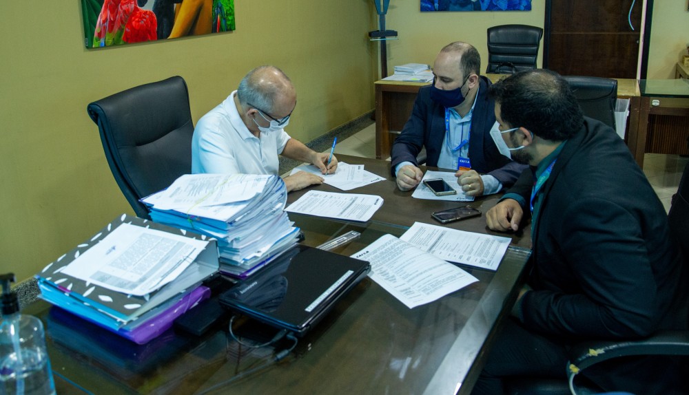 O prefeito José Carlos do Pátio assinou simbolicamente o termo de aceito do financiamento nesta quinta-feira (09) em seu gabinete, visto que o processo corre digitalmente com a utilização de senha eletrônica. O superintendente da regional de Rondonópolis da CEE, Gilliard Beltroão e o gerente geral da CEF Rondonópolis, Wylton Serpa estiveram presentes no ato de assinatura.