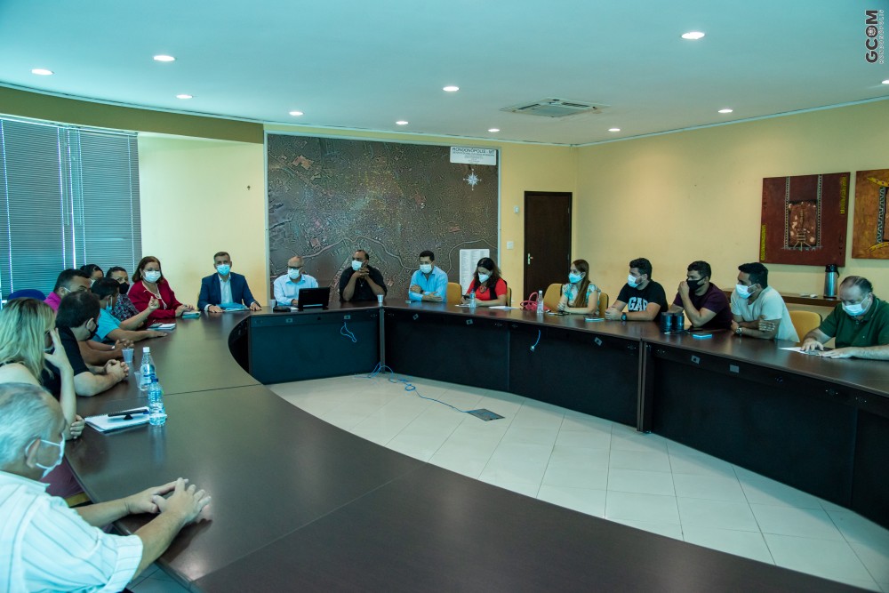O prefeito José Carlos do Pátio se reuniu na tarde desta quarta-feira (25) com empresários, vereadores e Sindicatos que representam bares, lanchonetes e restaurantes de Rondonópolis, na sala de reuniões, na Prefeitura Municipal. A categoria veio solicitar a ampliação do horário do comércio noturno que atualmente pode funcionar das 5h às 22h devido as restrições em combate ao coronavírus.