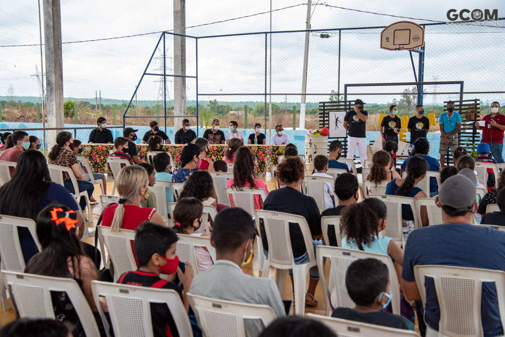 A aula inaugural foi encerrada com a entrega dos materiais que serão utilizados nas oficinas, como instrumentos musicais, bolas e o uniforme para os alunos.
