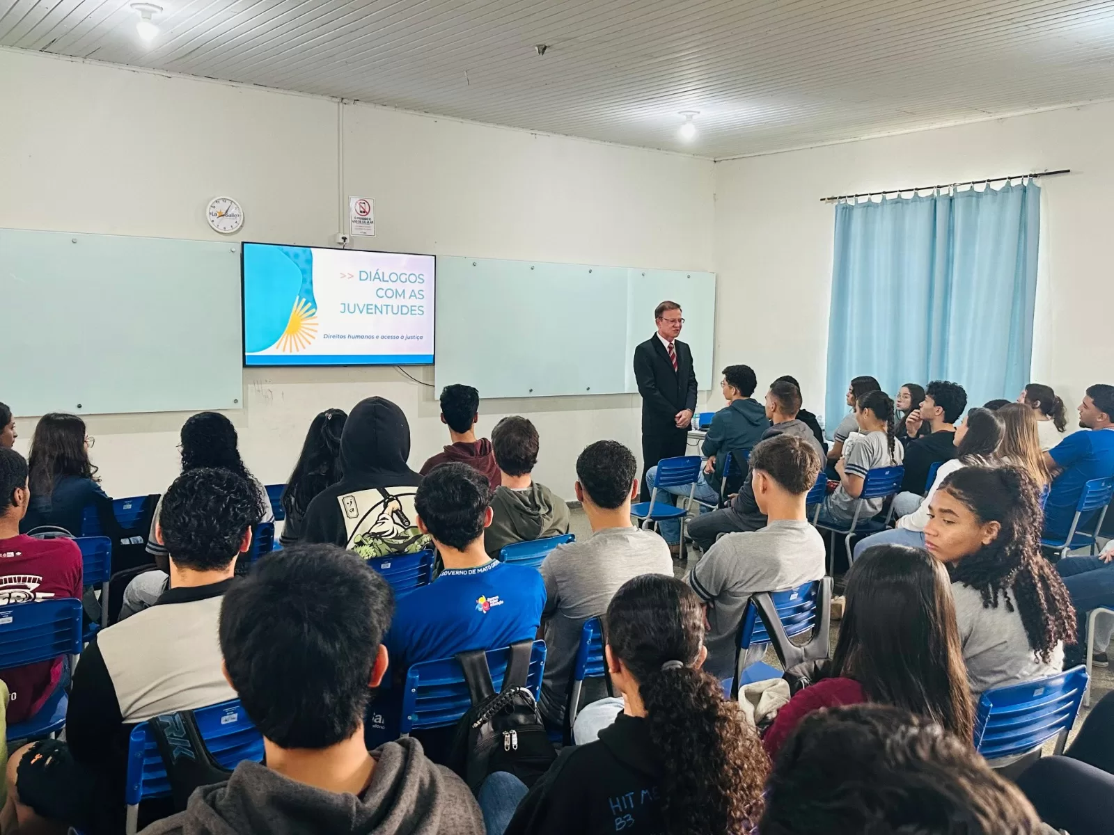 A Escola Estadual La Salle, uma das maiores da rede pública de Rondonópolis e fundada ainda em 1963, foi contemplada, nesta quinta-feira (30) pela manhã às 8h em diante, com o projeto Judiciário do CNJ Diálogos com as Juventudes, tendo recebido a palestra proferida pelo juiz Wanderlei José dos Reis, coordenador do CEJUSC da comarca de Rondonópolis, com o objetivo de promover a aproximação e o diálogo entre atores do Poder Judiciário e as juventudes em discussões sobre direitos humanos e acesso à justiça.