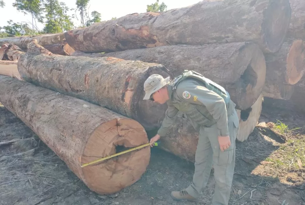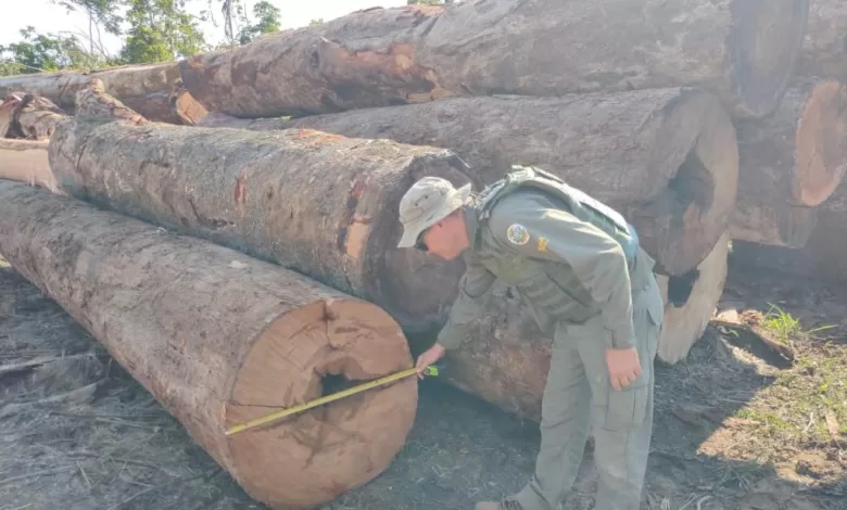 No local, as equipes constataram destruição de vegetação nativa do bioma Amazônico e exploração seletiva de madeira sem as autorizações necessárias para a realização do desmate. A Sema identificou, posteriormente, que a área afetada pela extração ilegal somou 13,4 hectares no ano de 2025.