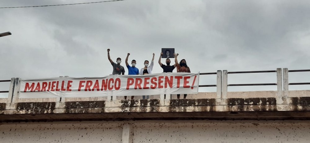 Os manifestantes ainda pregaram uma faixa em homenagem à vereadora na ponte da Marechal Rondon, na região do Casario.
