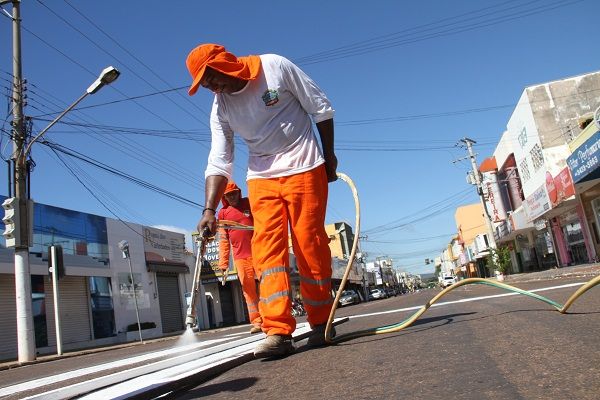 A Secretaria Municipal de Transporte e Trânsito realizou trabalho de reforço da sinalização na região central de Rondonópolis. As equipes se dividiram no período noturno durante o fim de semana. Foram pintadas faixas de pedestres, vagas de idosos, portadores de necessidades especiais e de motocicletas. O material utilizado é de maior durabilidade e garante mais visibilidade principalmente à noite.
