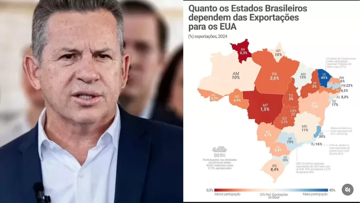 A posição do governador é respaldada por um levantamento de 2024 sobre a dependência dos estados brasileiros do mercado norte-americano. O estudo mostra que Mato Grosso enviou apenas 1,5% de todo o seu volume exportado para os Estados Unidos, um dos menores índices do país. Essa baixa dependência se explica pelo perfil da pauta de exportações: enquanto o Brasil vende majoritariamente produtos industriais (93,8%) aos EUA, a força de Mato Grosso está no agronegócio, cujos principais compradores são outras nações.