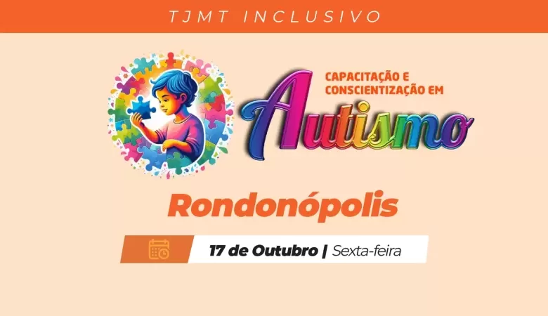 O Tribunal de Justiça de Mato Grosso (TJMT), por meio da Comissão de Acessibilidade e Inclusão, realizará no dia 17 de outubro, das 8h às 18h, em Rondonópolis, a 5ª edição do TJMT Inclusivo – Capacitação e Conscientização em Autismo, um evento multifocal que reunirá profissionais das áreas da justiça, saúde e educação para debater os avanços e desafios da inclusão social, do autismo e da neurodiversidade.